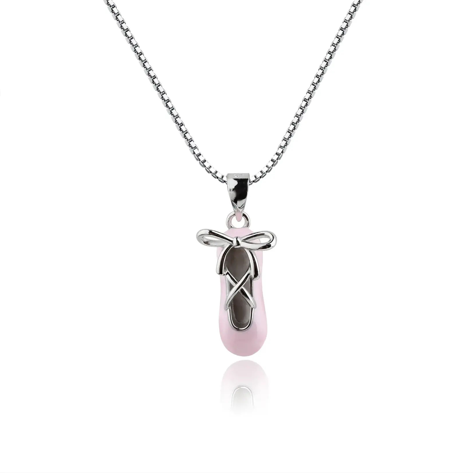 Sterling Silver Pink Enamel Ballerina Slipper Necklace